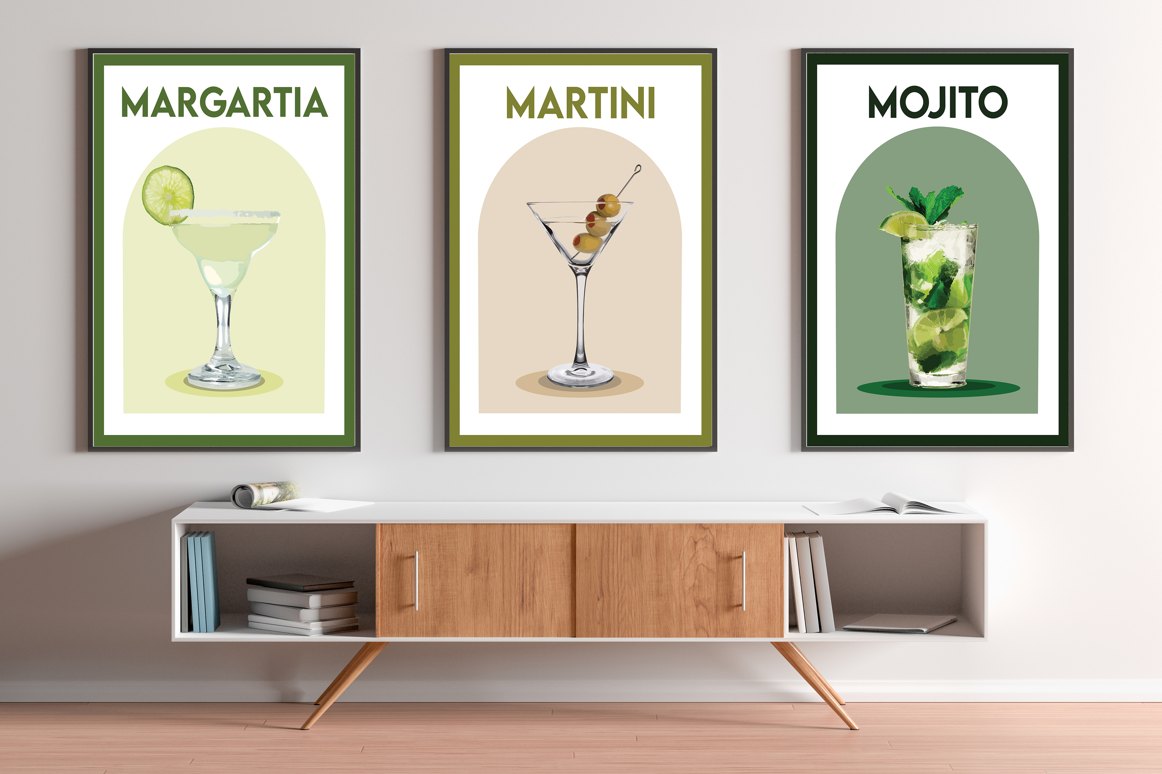 After moving into a new place I wanted to decorate but didn't want to spend money on new prints online so I decided to make my own. This is a collection of prints that I made for my bar area.